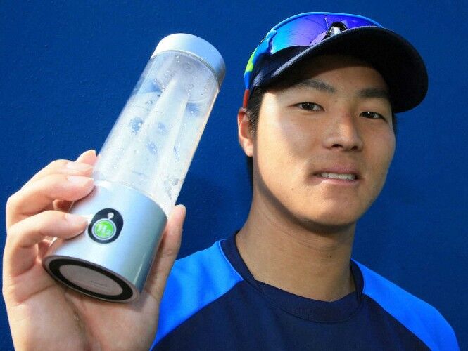 チームでも愛用しているのは僕だけです。WOO社の「ダブル水素ボトル」。