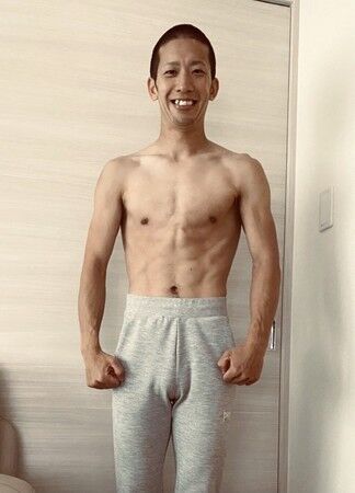 まだ薄暗い中、上半身裸で全力疾走。