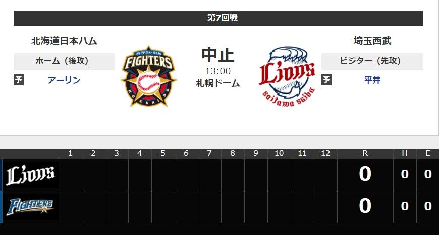 【速報】明日2日の西武戦(札幌ドーム)は中止となりました。