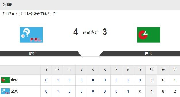 2021.7/17-オールスター第2戦【パリーグ×セリーグ】は4-3でパリーグが勝ち!!オールスター初出場の島内が3安打3打点の活躍でパリーグが勝利!! 2021年07月17日 カテゴリ:西武ライオンズの試合結果 【パリーグ4-3セリーグ】(出典 yahoo)683 風吹けば名無し (ワッチョイW 7d6d-JvqQ) :2021/07/17(土) 20:33:49.83勝ったデー(出典 【テレ朝系,AbemaTV】マイナビオールスターゲーム2021 第2戦 ★20) 続きを読む タグ :#試合結果#オールスターゲーム#パリーグ#セリーグ