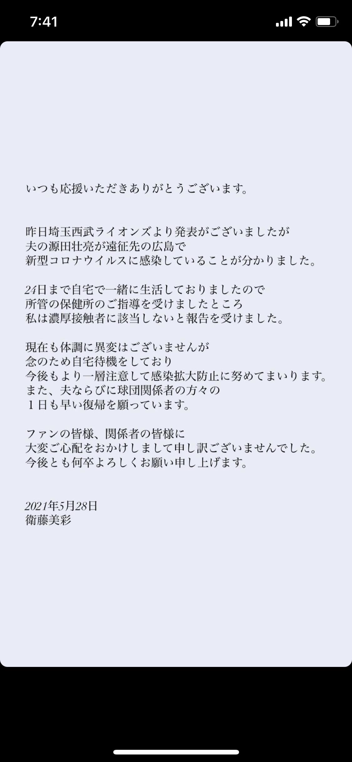 元「乃木坂46」の衛藤美彩が、夫で西武の源田壮亮内野手との第1子を妊娠していることが29日、分かった。自身のインスタグラムで報告した。